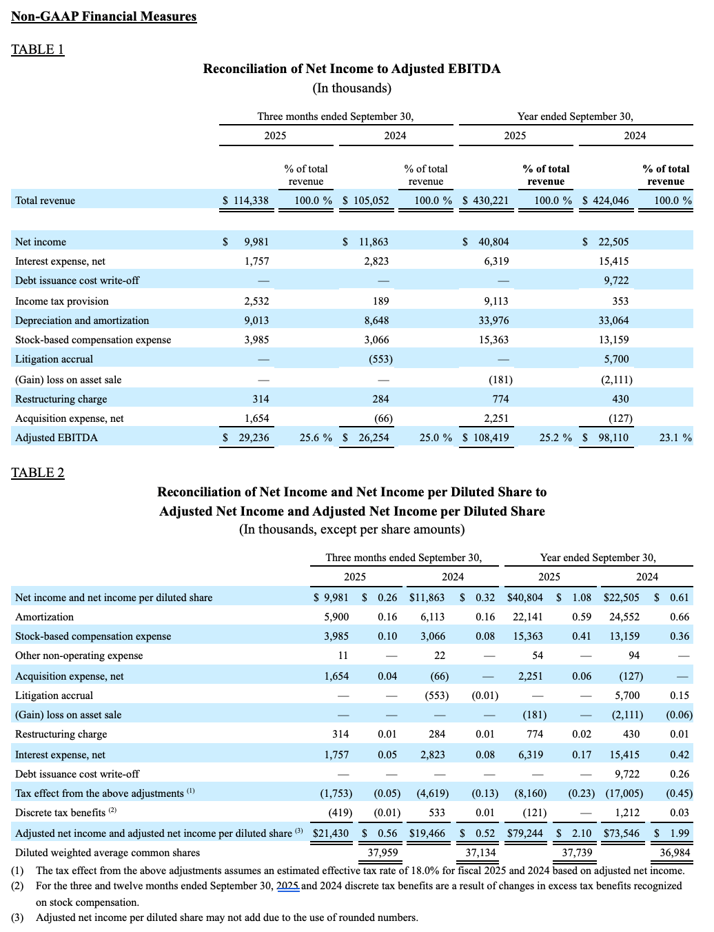 This release includes adjusted net income, adjusted net income per diluted share and Adjusted EBITDA (defined below), each of which is a non-GAAP measure.