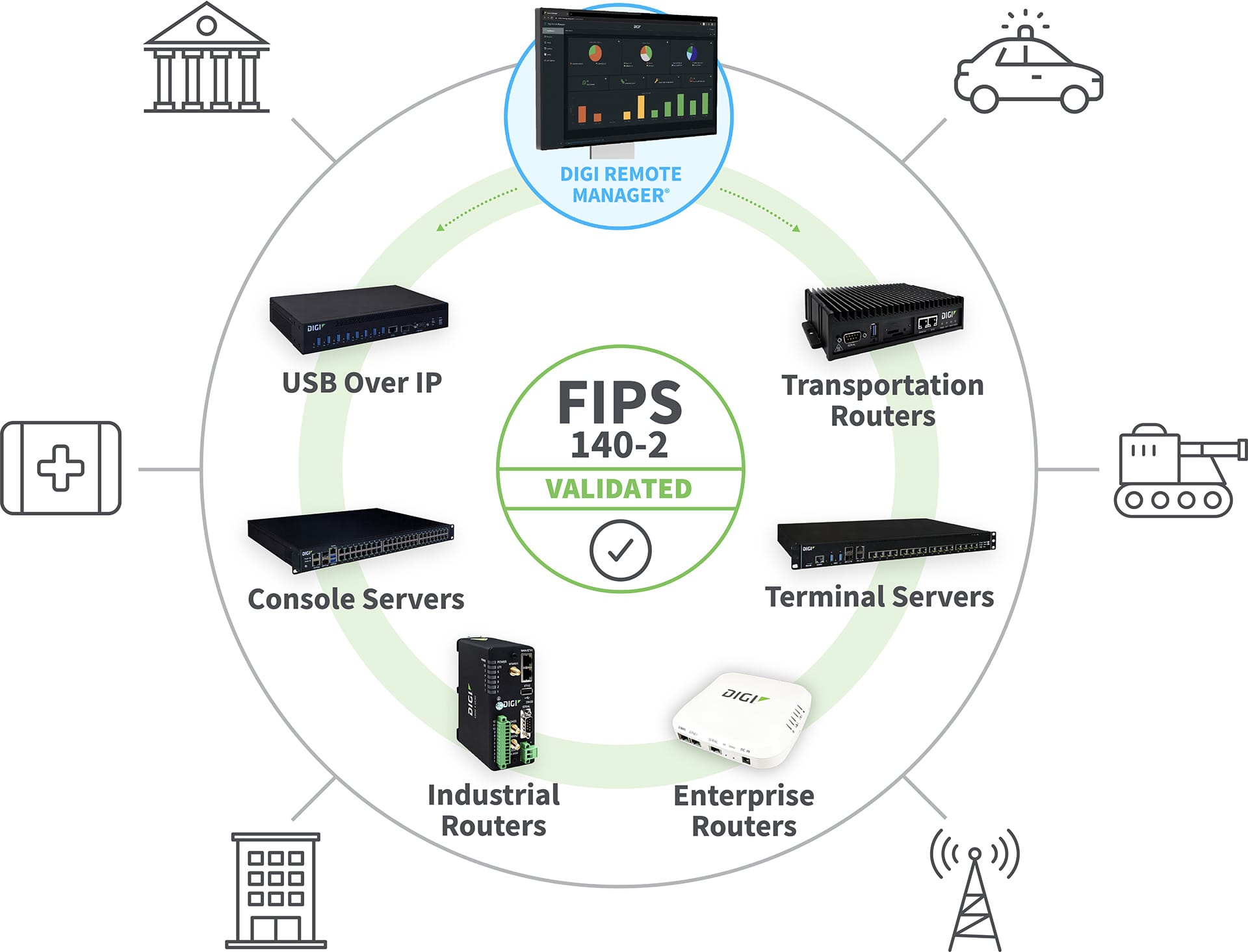 When you want to ensure that you’re always in compliance with FIPS 140 changes, consider that Digi's entire cellular suite is FIPS 140-2 validated via a simple firmware update using Digi Remote Manager®.